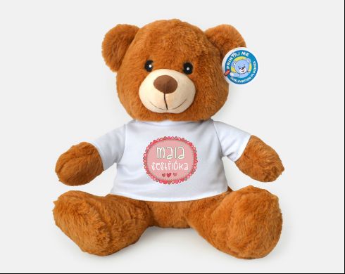 Měkoučký 33 cm veliký medvídek s tričkem, na které si můžeš potisknout cokoliv. Tričko je samozřejmě pratelné. Krásný dárek pro děti nebo pro zamilované. Hračka není vhodná pro děti do 3 let.