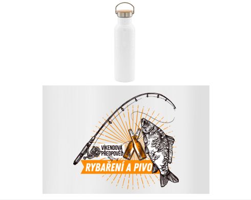 Elegantní cestovní bílá termoska pro potisk sublimací se šroubovacím bambusovým víčkem a praktickým sklopným nerezovým poutkem. Samotné víčko má několik předností - silikonové těsnění, šroubovací uzávěr z nerezové oceli a samotný bambusovvý vršek s antibakteriálním povrchem. Objem: 500 ml