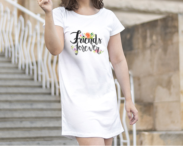 Volnost ve střihu i potisku. Nezáleží, jestli si přeješ mít svou hlášku bílou na černém, černou na bílém nebo má hrát všemi barvami, důležité je mít volnou ruku i šaty. Krátké volné šaty s vlastním potiskem jsou skvělá výbava pro tebe nebo dárek pro pořádně free kamarádku. Hodí se i pro tisk na více kusů třeba na dámskou rozlučku se svobodou nebo narozeninovou party. Užij si léto s vlastním potiskem a nezapomínej být originál.