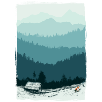 Obrázek „View“ je jako pozvánka do přírody s bonusem! Představte si, že sedíte pohodlně doma, ale máte výhled, jako byste byli na prázdninách v alpské chatě. Na obzoru se v líné mlze rýsují majestátní hory a husté lesy, které lákají k dobrodružství. V popředí je chaloupka, která přímo vyzývá ke kávičce na verandě. A kdo by odolal tomu malému zrzavému překvapení? Ideální motiv pro váš oblíbený hrnek, polštář nebo tričko!